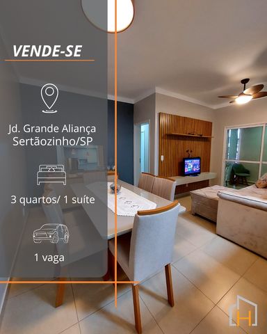 📢 Vende-se Apartamento 📍 Jardim Grande Aliança – Sertãozinho/SP ▶️ R$ 440.000,00 (Aceita financiamento bancário) 👉 Excelente apartamento com ambientes amplos, planejados e bem distribuídos, localizado em bairro valorizado da cidade. 📐 Área do apartamento: 84 m² ✔ 3 dormitórios, sendo 1 suíte climatizada ✔ Banheiro social ✔ Sala com 2 ambientes ✔ Cozinha planejada e integrada ✔ Armários planejados ✔ Lavanderia / área de secagem ✔ Varanda gourmet ✔ Sistema de segurança ✔ 1 vaga de garagem ✨ Diferenciais: Ótima localização no bairro | Pintura nova | Ventiladores de teto | Face sombra | Cozinha planejada com cooktop e lustres | Prédio com elevador | Bons acabamentos 📞 PLANTÃO DE VENDAS (16) 3947-4558 / 98872-7876